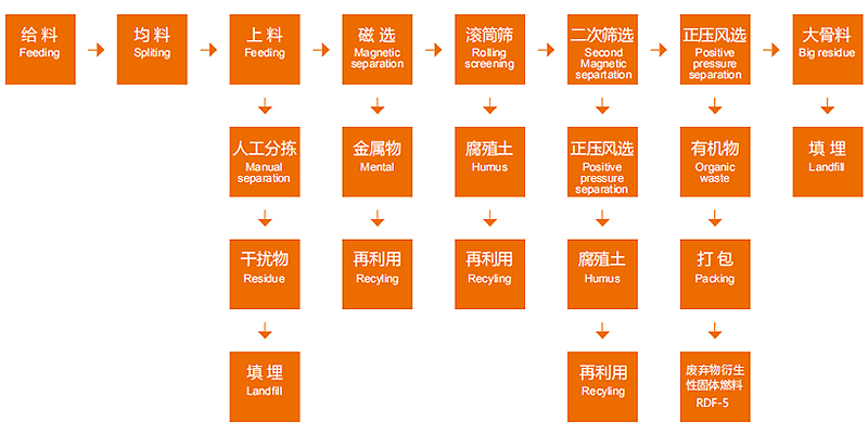 存量垃圾垃圾篩分治理技術(shù)屬原位異位結(jié)合的治理技術(shù),其特點是消除污染場地的污染源,根據(jù)物料中各組分的密度、顆粒大小、磁化率、比重等物理性質(zhì)的差異,選用對應的篩分工藝及設(shè)備,將存量垃圾物料篩分為無機大骨料、輕質(zhì)物和腐殖土3種,存量垃圾篩分可實現(xiàn):