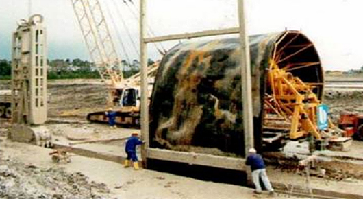傳統(tǒng)垂直防滲墻的做法通常是采用膨潤土泥漿護壁,開挖溝槽,然后回填混合材料,構(gòu)筑起永久性的垂直防滲墻,由于其結(jié)構(gòu)的性質(zhì)或采用回填材料的不同,此類防滲墻的整體性會存在一定的問題。