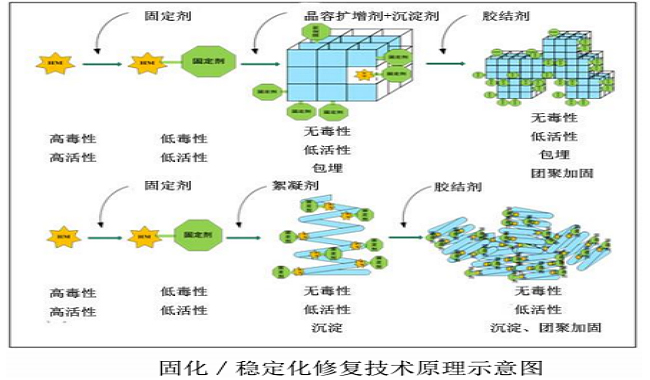 固化穩(wěn)定化技術(shù)是指將污染土壤與黏結(jié)劑混合形成凝固體而達到物理封鎖或發(fā)生化學反應形成固體沉淀物,從而達到降低污染物遷移性和活性的目的。按處置位置的不同,分為原位和異位固化穩(wěn)定化。