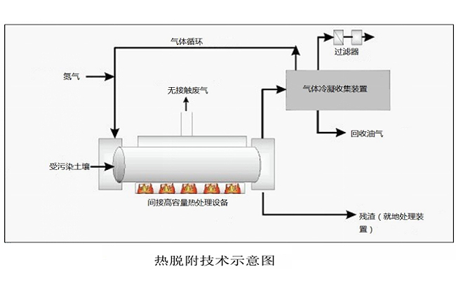 技術(shù)原理: 熱脫附修復技術(shù)是指通過直接或間接熱交換,將污染介質(zhì)及其所含的污染物加熱到足夠的溫度,以使污染物從污染介質(zhì)上得以揮發(fā)或分離的過程。