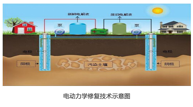 技術(shù)原理: 電動力學修復技術(shù)利用插入土壤中的兩個電極在污染土壤兩端加上低壓直流電場,在電化學和電動力學的復合作用下,水溶的或吸附在土壤顆粒表層的污染物根據(jù)所帶電荷的不同向正負電極移動,使污染在電極附近富集或被回收利用,從而達到清潔土壤的目的。